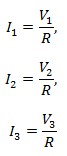 - Then by Kirchoff’s current law, the current flowing through feedback resistor Rf is given by the sum of these 3 currents.